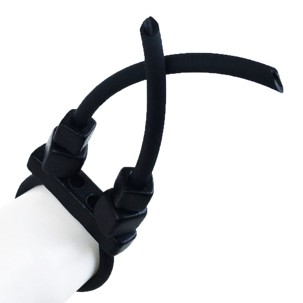 υλικά: 3 χιλ. μαύρο καουτσούκ, 5 χιλ. X 3 εκ. χάντρα από πηλό σε μαύρο χρώμα, 5 χιλ. τετράγωνες χάντρες από πηλό σε μαύρο χρώμα, 7 χιλ. τετράγωνες χάντρες από πηλό σε μαύρο χρώμα