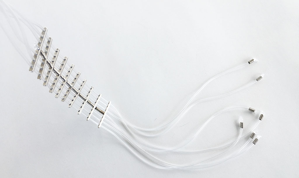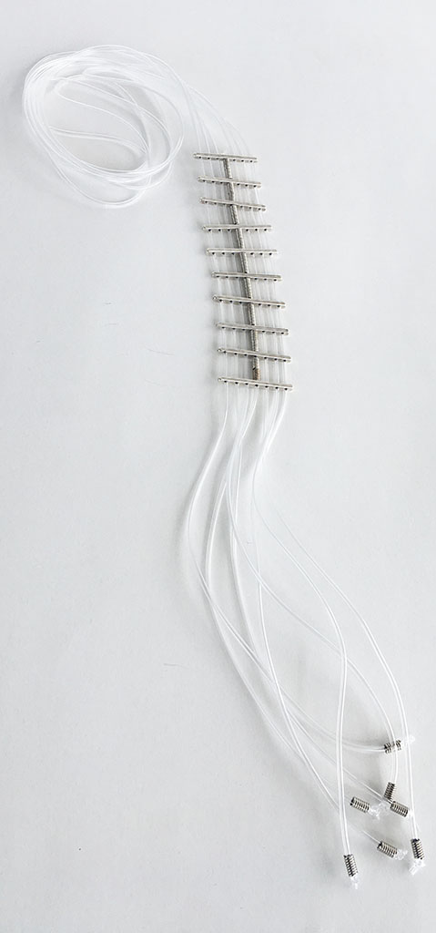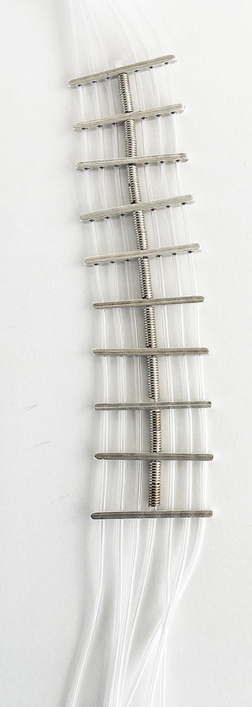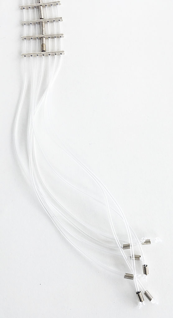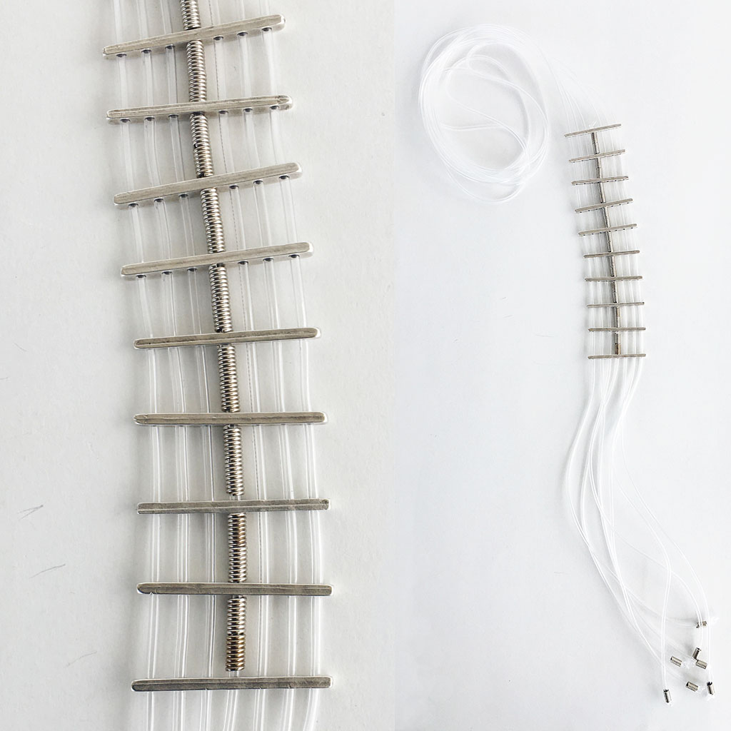 υλικά/πάχος: 2 χιλ. x 4 χιλ. μεταλλικές χάντρες σχήμα ράβδοι, 2 χιλ. διάφανο καουτσούκ, 3 χιλ. x 6 χιλ. ανάγλυφες μεταλλικές χάντρες σχήμα σωλήνα