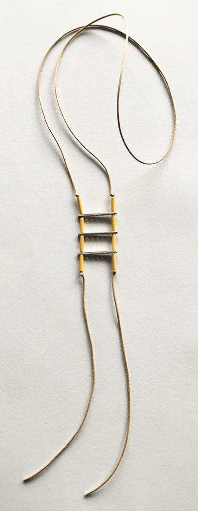 υλικά/πάχος: 1,6 εκ. χάντρες από πηλό σε γκρι ασημί χρώμα σχήμα σωλήνα, 2 χιλ. x 3,9 εκ. μεταλλικές χάντρες ράβδοι, 2 χιλ. μαύρο βαμβακερό σχοινί