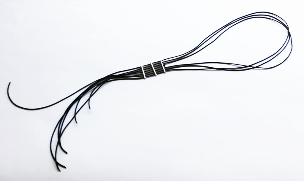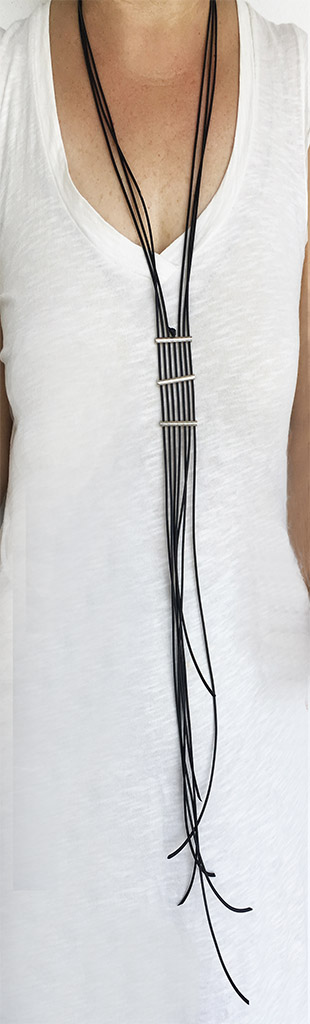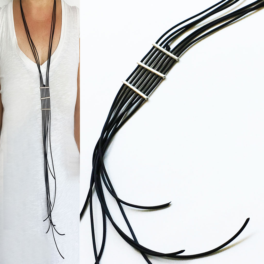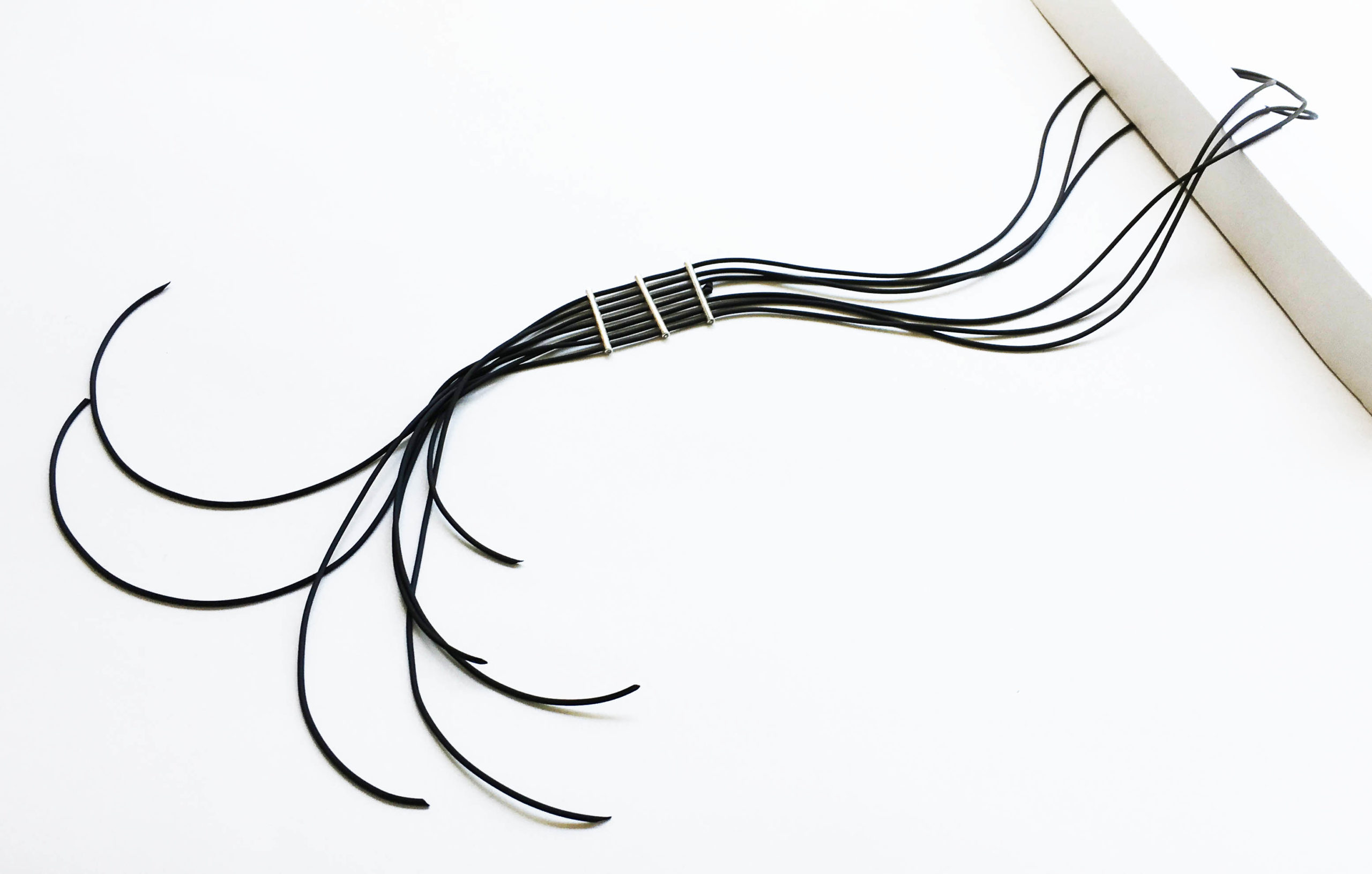 υλικά/πάχος: 2 χιλ. x 3,3 εκ. μεταλικές χάντρες σε σχήμα ράβδους, 2 χιλ. μαύρο καουτσούκ