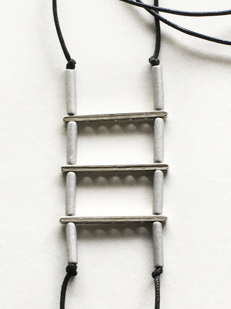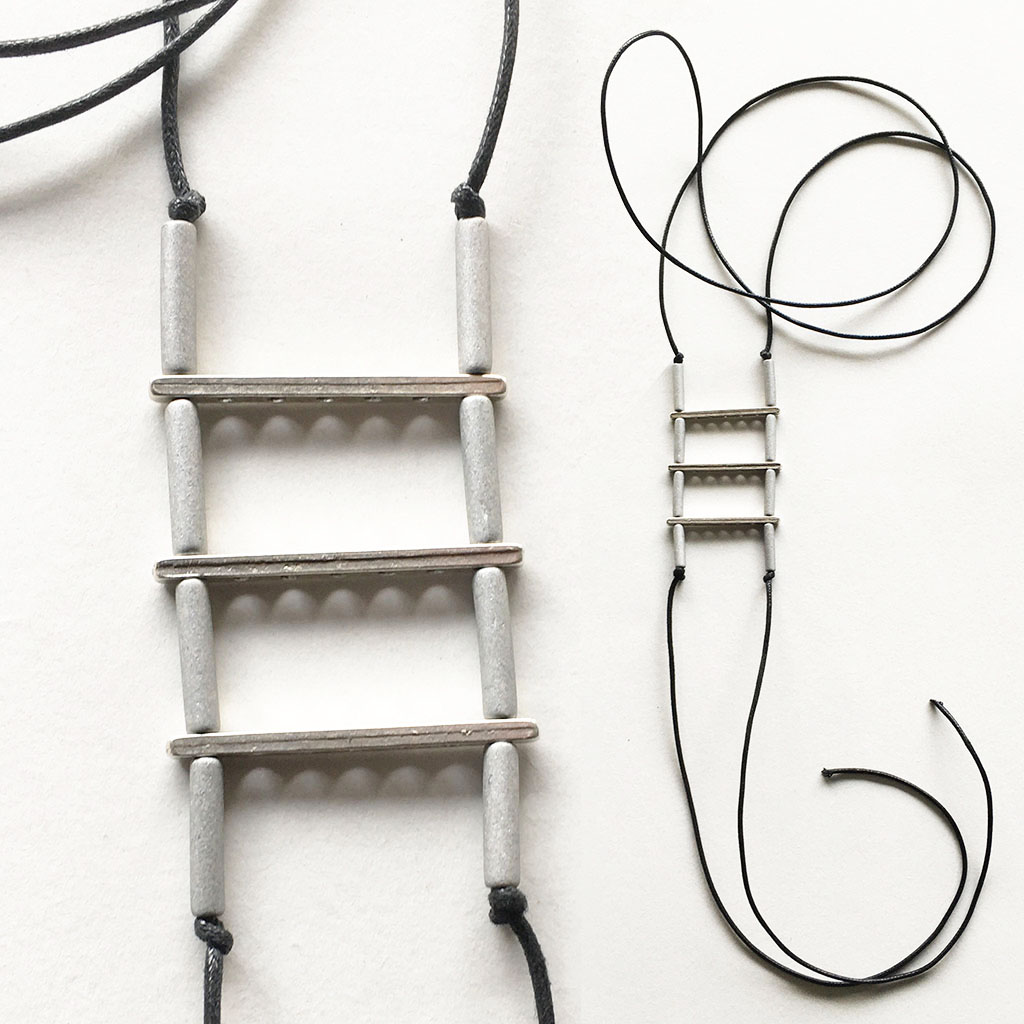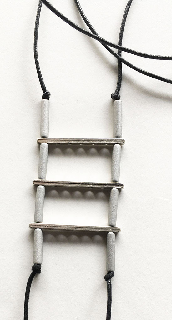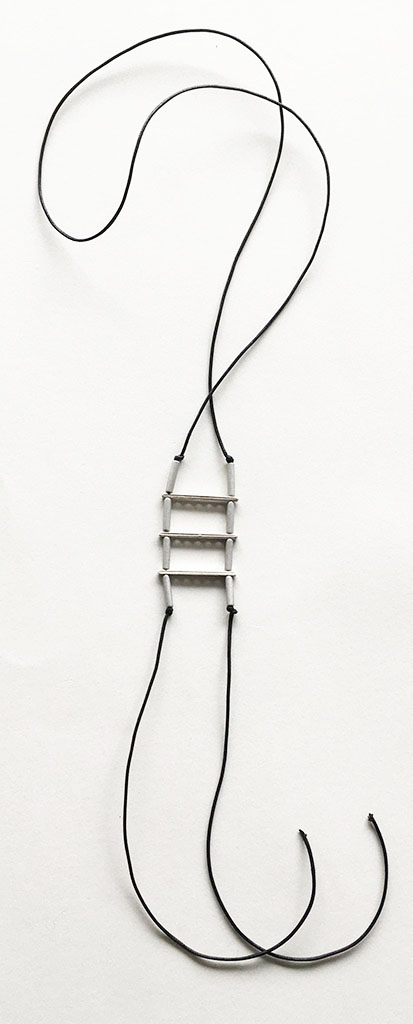 υλικά/πάχος: 1,6 εκ. χάντρες από πηλό σε γκρι ασημί χρώμα σχήμα σωλήνα, 2 χιλ. x 3,9 εκ. μεταλλικές χάντρες ράβδοι, 2 χιλ. μαύρο βαμβακερό σχοινί