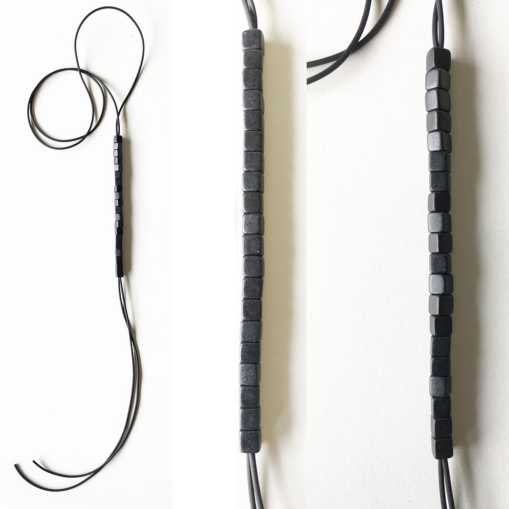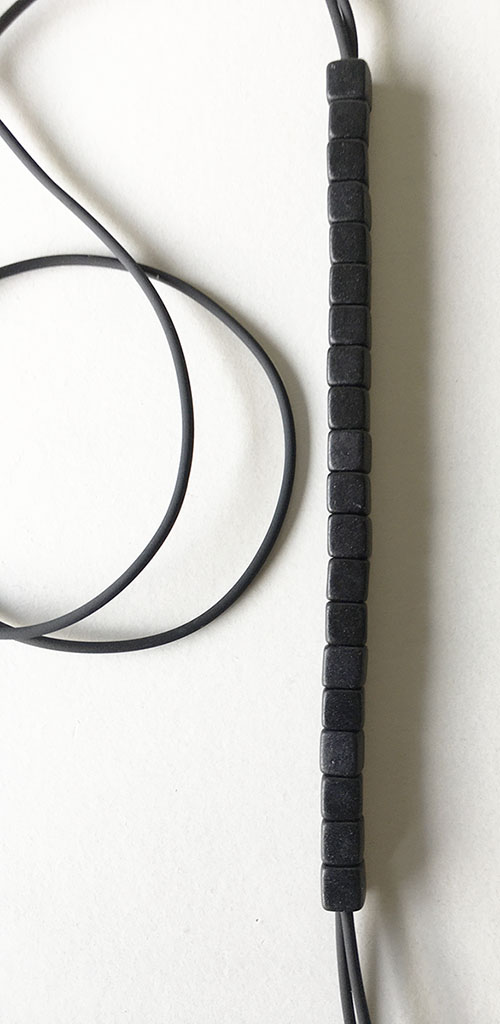 υλικά/πάχος: 7 χιλ. μαύρες τετράγωνες χάντρες από πηλό, 2χιλ. μαύρο καουτσούκ