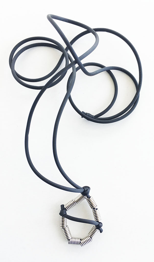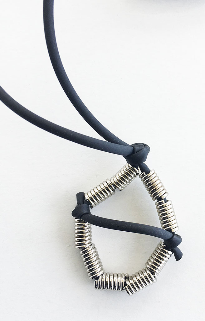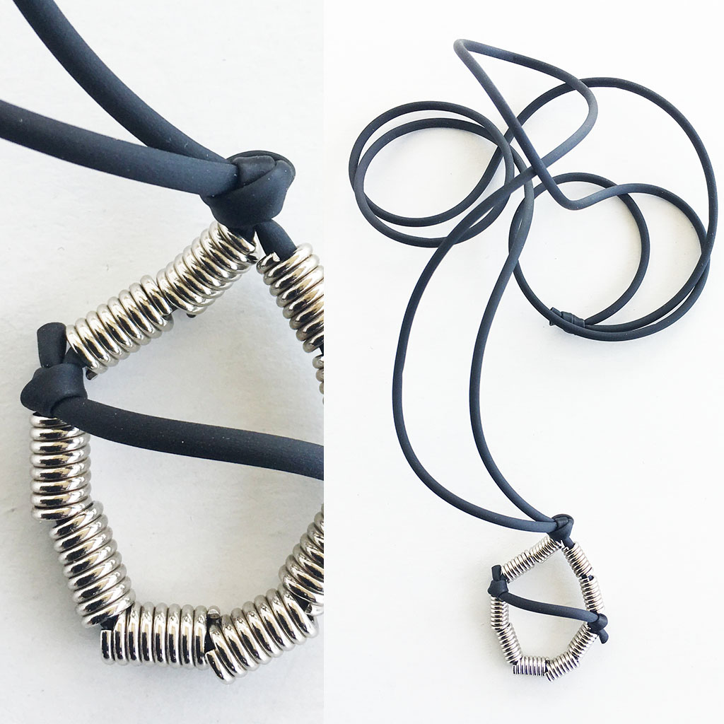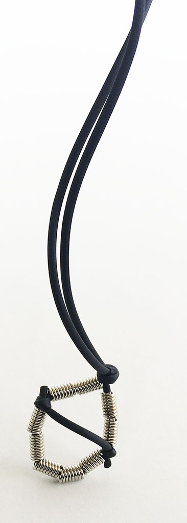 υλικά: 2 χιλ. μαύρο καουτσούκ, 3 χιλ. x 6 χιλ. ανάγλυφη μεταλλική χάντρα σχήμα σωλήνα